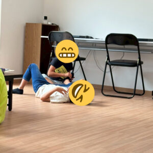 見つけたお友達が「足マッサージしてあげるー」と言って優しくマッサージを