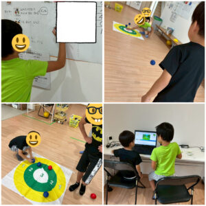 昨日のSSTでぼっちゃをしたのですが、やる直前まで文句を言っていた子が、ボールをうまく投げられない子に「ここや!いけ!」とアドバイスしてくれ、うまく行けば大喜びしてました!